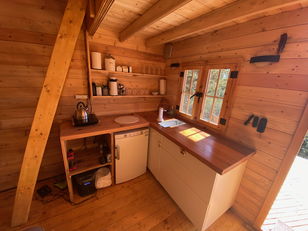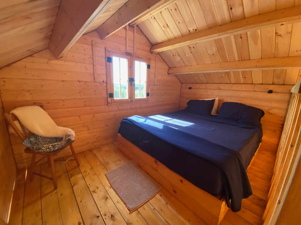 “Kiltearn on the Peak” is a stunning but cozy tiny house on Buck Lake in South Frontenac, about 30 minutes north of Kingston, Ontario. Situated on 11 forested acres with 400 feet of shoreline and its own private bay, Kingston on the Peak is perfect getaway for a couple, offering a spectacular lake view: swimming, forest-bathing, messing around in small boats, spectacular sunsets on the deck, relaxing on the deck, and reading by soapstove heater.